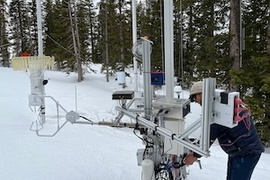 Laser light sheet and SLR camera scan the air to map lanes where snow is glistening.