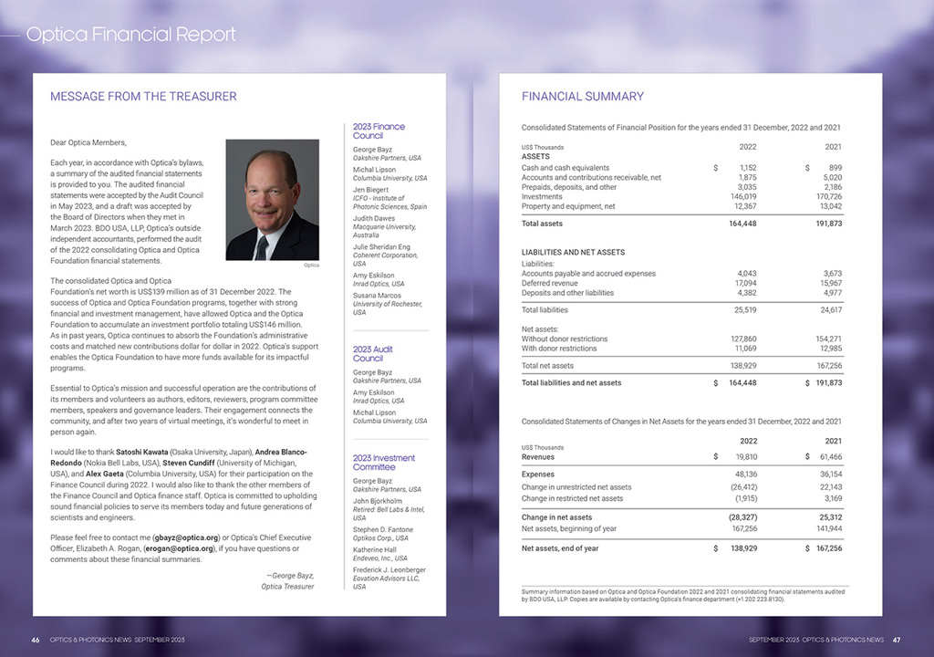 Optica Financials OPEN Optica Financial Report Summary of Optica’s 2022 financial statements. [Enlarge graphic] [Enlarge graphic] Publish Date: 01 September 2023 Add a Comment Please enable JavaScript to view the comments powered by Disqus.