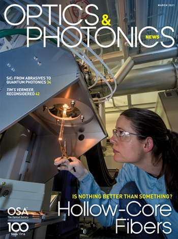 Optics & Photonics News Volume 32 - 2021 Select Year 2024 2023 2022 2021 2020 2019 2018 2017 2016 2015 2014 2013 2012 2011 2010 2009 2008 2007 2006 2005 2004 2003 2002 2001 2000 1999 1998 1997 1996 1995 1994 1993 1992 1991 1990 1989 1988 1987 1986 1985 1984 1983 1982 1981 1980 1979 1978 1977 1976 1975 January 2021 February 2021 March 2021 April 2021 May 2021 June 2021 July/August 2021 September 2021 October 2021 November 2021 December 2021