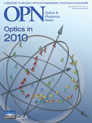 Optics & Photonics News Volume 21 - 2010 Select Year 2024 2023 2022 2021 2020 2019 2018 2017 2016 2015 2014 2013 2012 2011 2010 2009 2008 2007 2006 2005 2004 2003 2002 2001 2000 1999 1998 1997 1996 1995 1994 1993 1992 1991 1990 1989 1988 1987 1986 1985 1984 1983 1982 1981 1980 1979 1978 1977 1976 1975 January 2010 February 2010 March 2010 April 2010 May 2010 June 2010 July/August 2010 September 2010 October 2010 November 2010 December 2010
