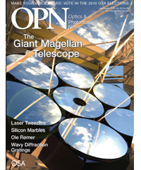 Optics & Photonics News Volume 20 - 2009 Select Year 2024 2023 2022 2021 2020 2019 2018 2017 2016 2015 2014 2013 2012 2011 2010 2009 2008 2007 2006 2005 2004 2003 2002 2001 2000 1999 1998 1997 1996 1995 1994 1993 1992 1991 1990 1989 1988 1987 1986 1985 1984 1983 1982 1981 1980 1979 1978 1977 1976 1975 January 2009 February 2009 March 2009 April 2009 May 2009 June 2009 July/August 2009 September 2009 October 2009 November 2009 December 2009