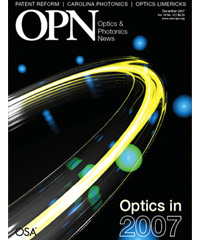 Optics & Photonics News Volume 18 - 2007 Select Year 2024 2023 2022 2021 2020 2019 2018 2017 2016 2015 2014 2013 2012 2011 2010 2009 2008 2007 2006 2005 2004 2003 2002 2001 2000 1999 1998 1997 1996 1995 1994 1993 1992 1991 1990 1989 1988 1987 1986 1985 1984 1983 1982 1981 1980 1979 1978 1977 1976 1975 January 2007 February 2007 March 2007 April 2007 May 2007 June 2007 July/August 2007 September 2007 October 2007 November 2007 December 2007
