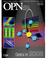 Optics & Photonics News Volume 17 - 2006 Select Year 2024 2023 2022 2021 2020 2019 2018 2017 2016 2015 2014 2013 2012 2011 2010 2009 2008 2007 2006 2005 2004 2003 2002 2001 2000 1999 1998 1997 1996 1995 1994 1993 1992 1991 1990 1989 1988 1987 1986 1985 1984 1983 1982 1981 1980 1979 1978 1977 1976 1975 January 2006 February 2006 March 2006 April 2006 May 2006 June 2006 July/August 2006 September 2006 October 2006 November 2006 December 2006