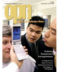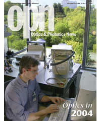 Optics & Photonics News Volume 15 - 2004 Select Year 2024 2023 2022 2021 2020 2019 2018 2017 2016 2015 2014 2013 2012 2011 2010 2009 2008 2007 2006 2005 2004 2003 2002 2001 2000 1999 1998 1997 1996 1995 1994 1993 1992 1991 1990 1989 1988 1987 1986 1985 1984 1983 1982 1981 1980 1979 1978 1977 1976 1975 January 2004 February 2004 March 2004 April 2004 May 2004 June 2004 July 2004 August 2004 September 2004 October 2004 November 2004 December 2004