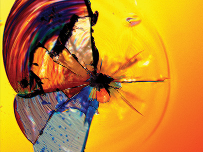Self-destructive beauty: Image of laser-induced damage on an optical surface recorded with a Nomarski type microscope.