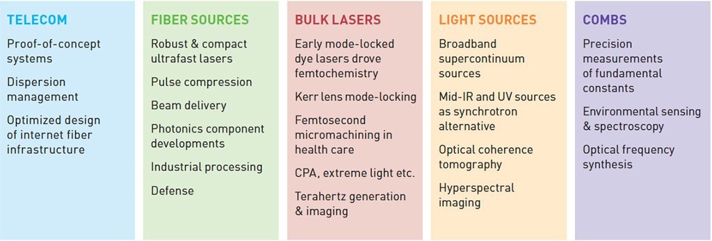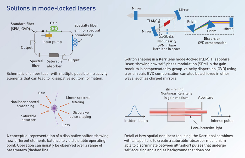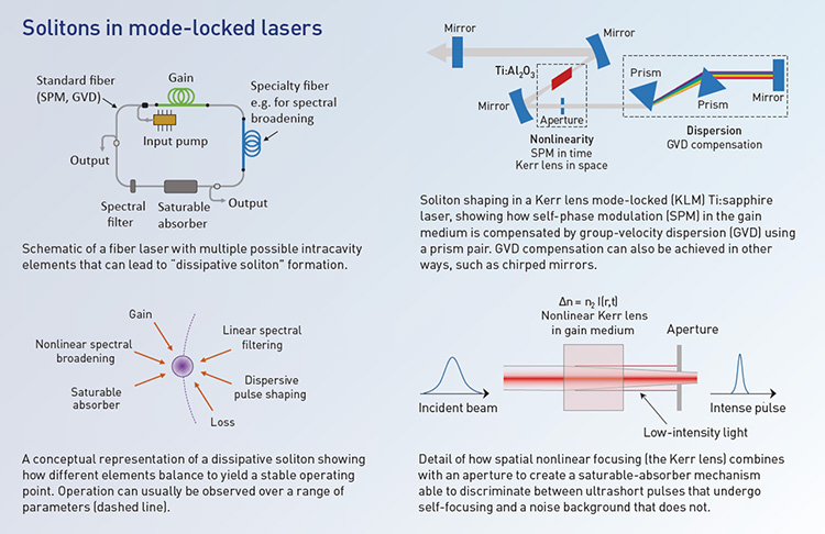Applications of temporal solitons: Initially proposed as a propagation-invariant information carrier in optical communications, the temporal soliton now underpins the field of ultrafast photonics. [Enlarge graphic]