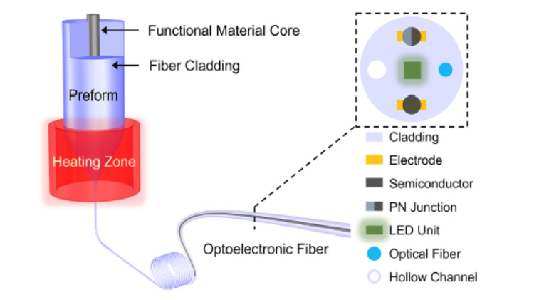 Fiber optics meets silicon photonics: Modern drawing techniques that allow silicon, germanium and other semiconductor materials to form the core of optical fibers raise the prospect of semiconductor devices embedded directly in fiber. [Enlarge graph] [J. Zhang et al., J. Lightwave Technol. 39, 3836 (2021)]