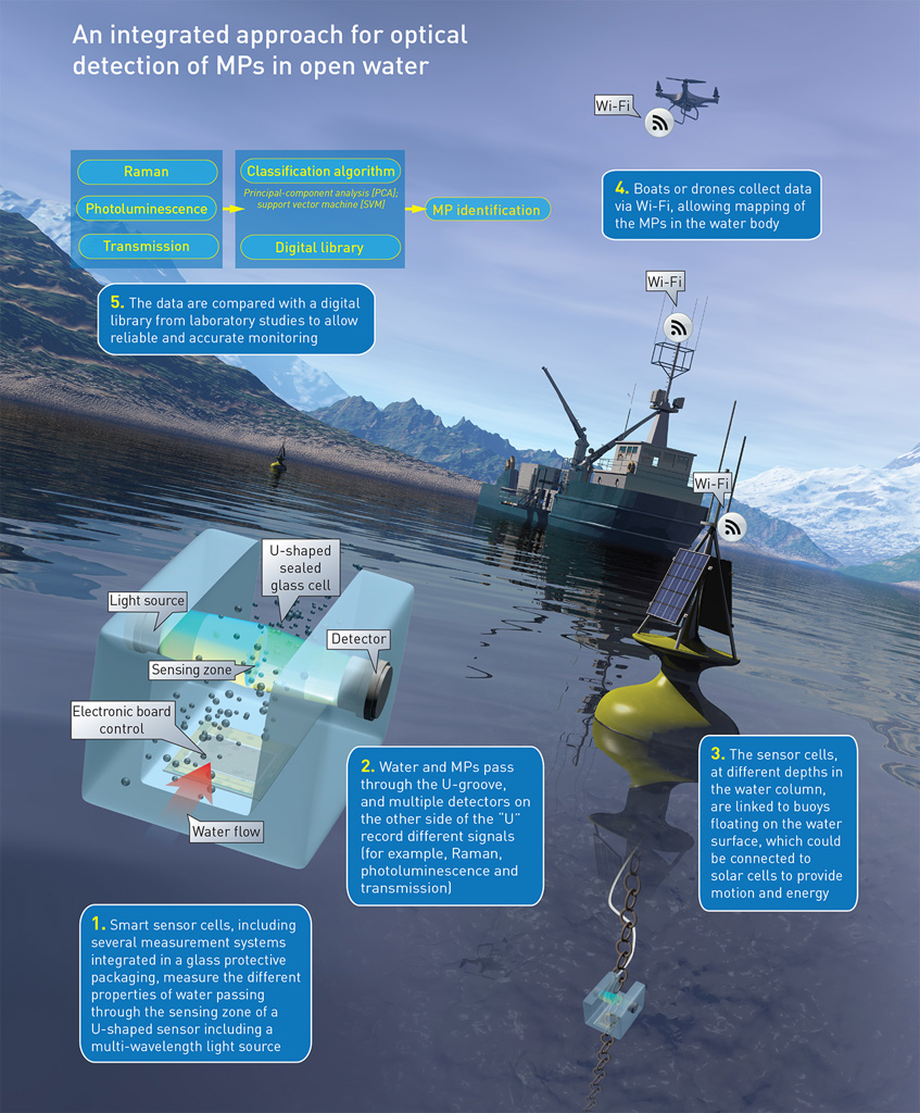 A realistic picture about the abundance and dispersion of MPs in aquatic environments requires not just laboratory measurements, but also in situ probing and monitoring. Although most of the individual technologies are ready, some additional work will be required to combine them for the development of both practical optical sensors and the data analysis techniques to support them.