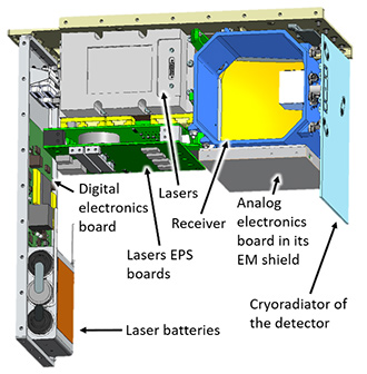 Cutaway drawing of the Lunar Flashlight instrument [NASA Jet Propulsion Laboratory]