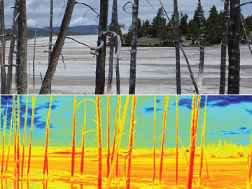 Eruptions of boiling geysers; silent, bubbling hot springs; turbulent, hot outflows mixing into cold rivers—the breathtaking thermal features of Yellowstone National Park become both art and science when observed with close-up infrared thermal imaging.