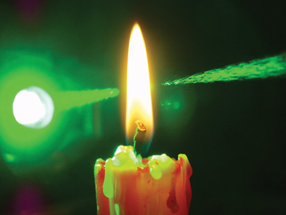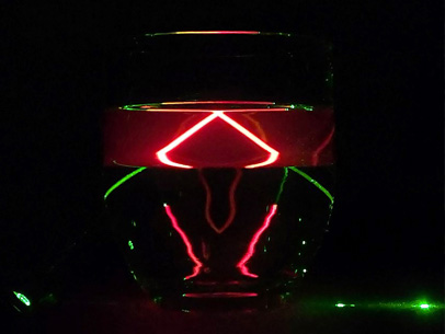 Discovering hidden colors in nature: The fluorescence of olive oil—as well as the phenomenon of total internal reflection—is visible under illumination with a green laser.