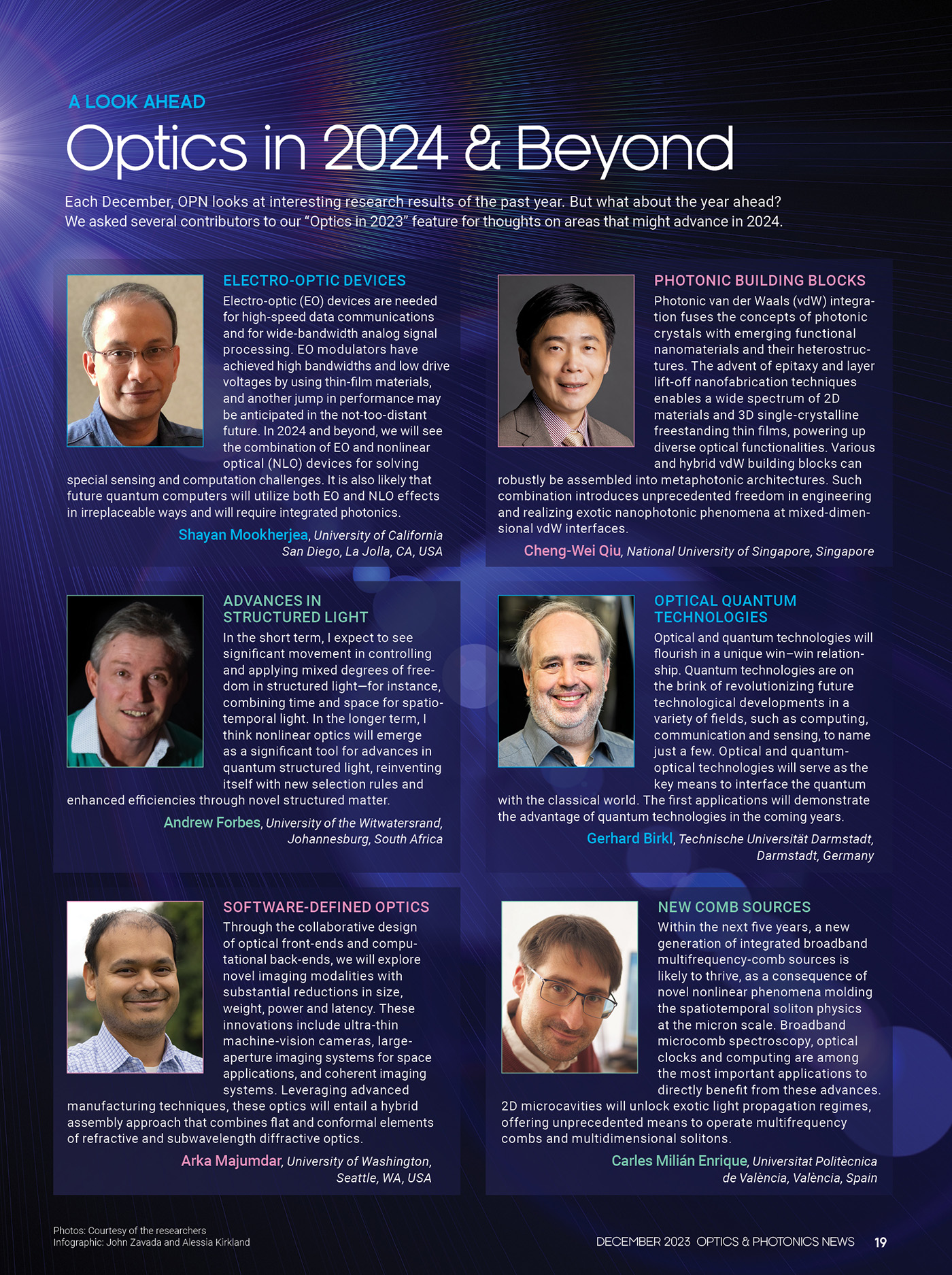 Each December, OPN looks at interesting research results of the past year. But what about the year ahead? We asked several contributors to our “Optics in 2023” feature for thoughts on areas that might advance in 2024.