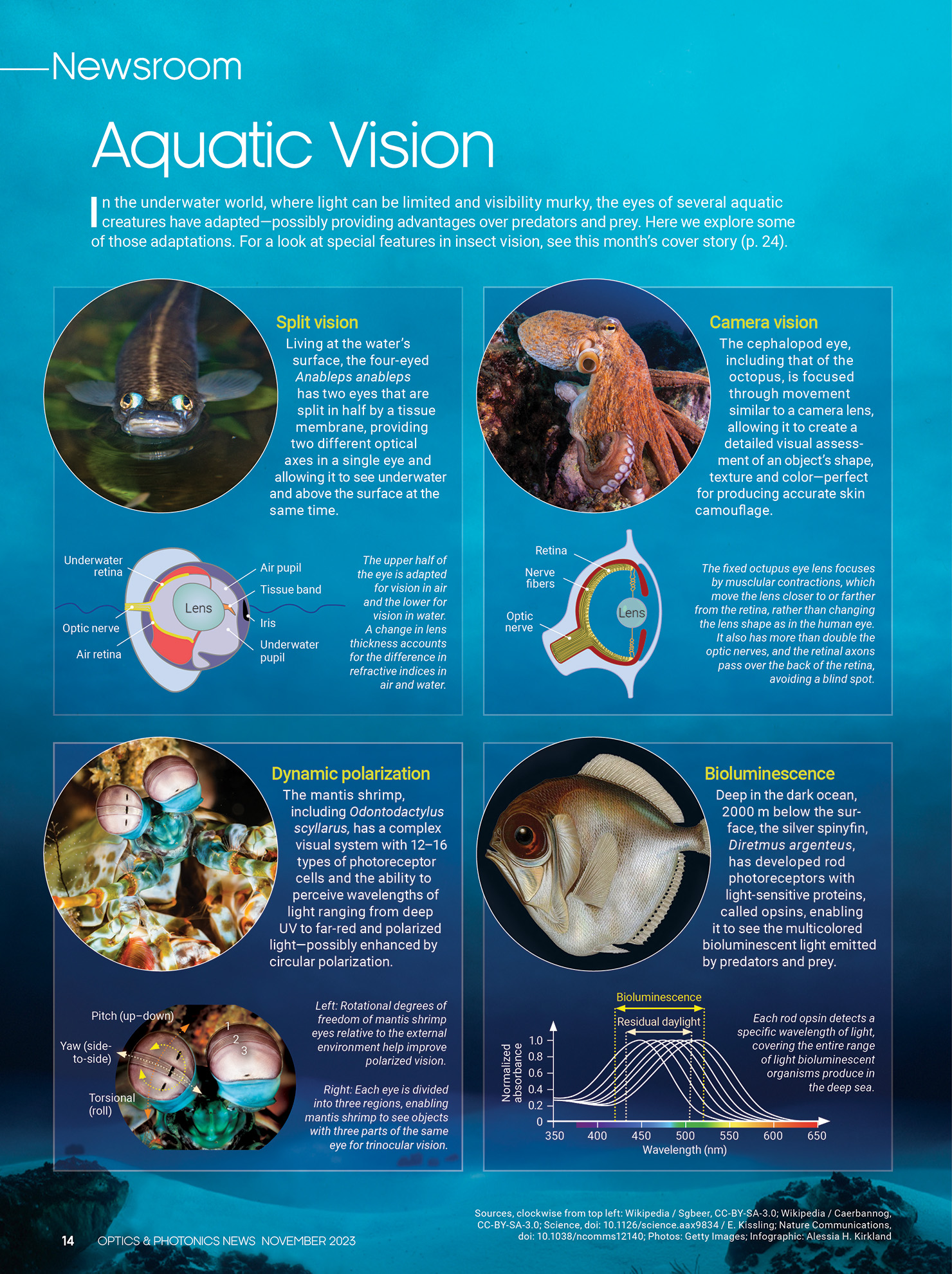 In the underwater world, where light can be limited and visibility murky, the eyes of several aquatic creatures have adapted—possibly providing advantages over predators and prey.