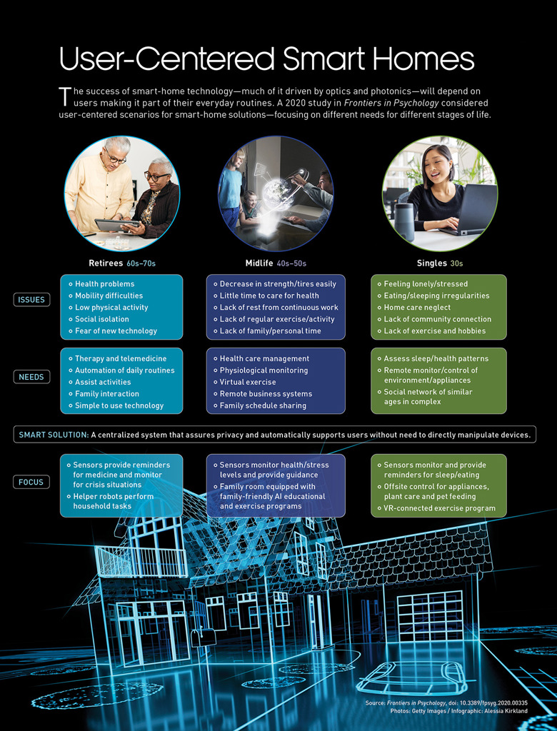 The success of smart-home technology will depend on users making it part of their everyday routines. User-centered smart-home solutions focus on different needs for different stages of life.