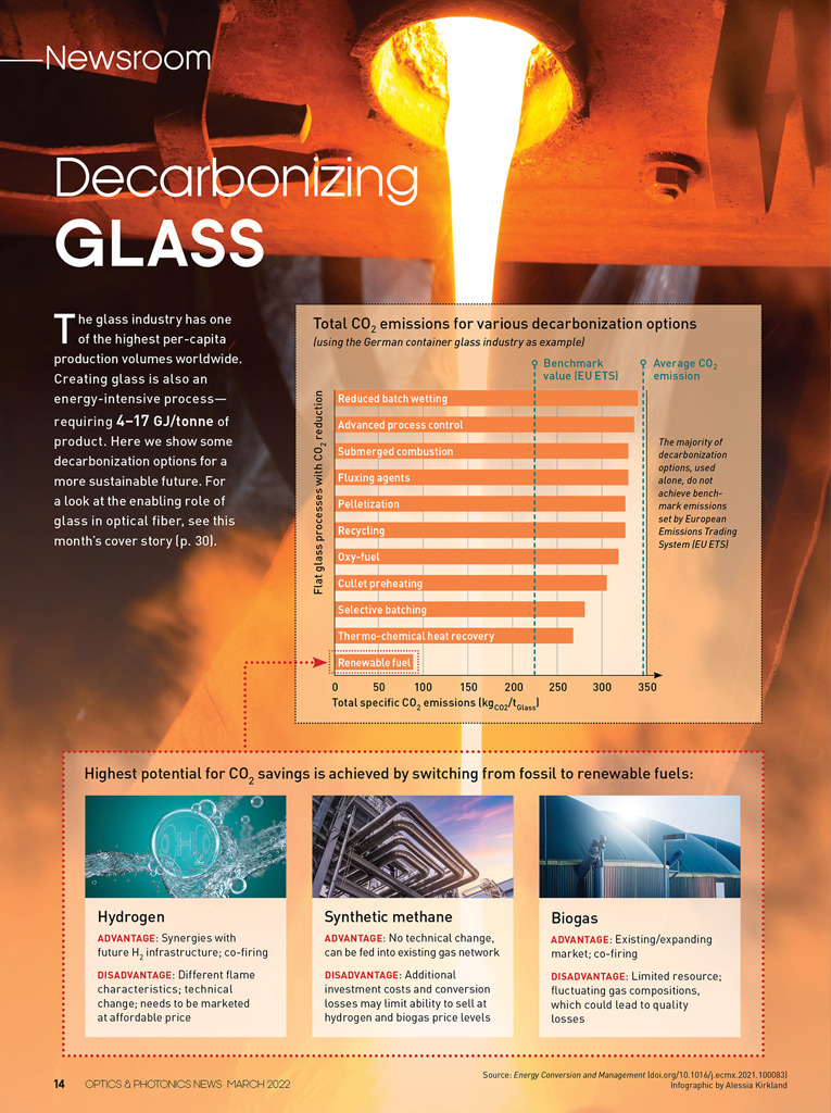 The glass industry has one of the highest per-capita production volumes worldwide. Creating glass is also an energy-intensive process. Here we show some decarbonization options for a more sustainable future.