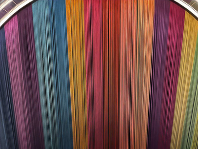 The scattering of light creates vivid colors in 12,479 hanging fibers representing 12,479 famous ancient Chinese paintings.