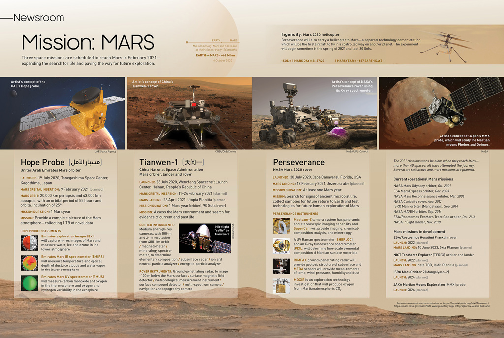 Three space missions are scheduled to reach Mars in February 2021 — expanding the search for life and paving the way for future exploration.