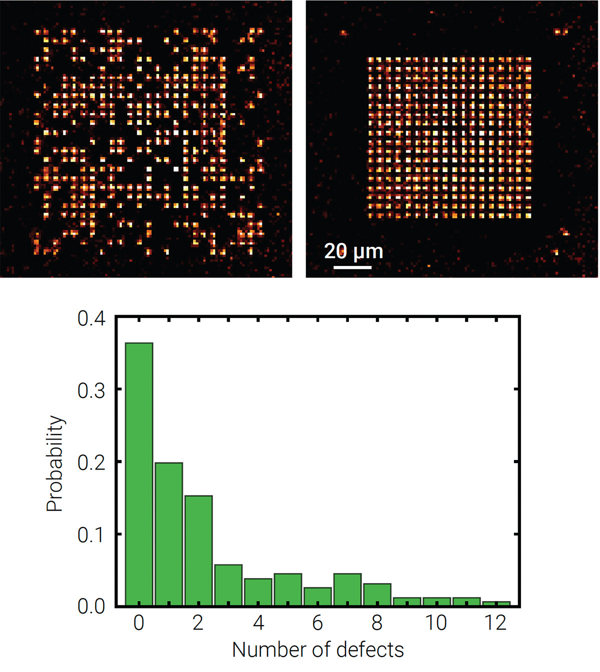 However, early attempts to build quantum computers from neutral atoms met with two main difficulties. The first was the need to extend existing methods for trapping single atoms in optical tweezers to create large-scale atomic arrays. Although technologies such as spatial light modulators enable laser beams to be used to produce a regular pattern of microtraps, loading the atoms into the tweezers is a stochastic process—which means that the probability of each trap being occupied is 50%. As a result, the chances of creating a defect-free array containing large numbers of atoms becomes vanishingly small.