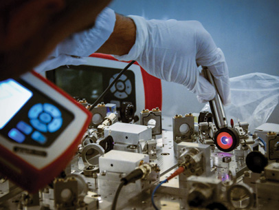 cA quantum engineer measures the optical power of a laser beam at Atom Computing’s research and development facility in Boulder, CO, USA. [Atom Computing]