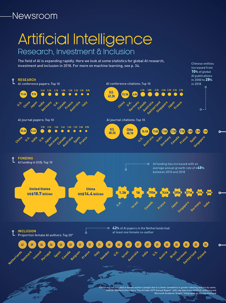 The field of AI is expanding rapidly. Here we look at some statistics for global AI research,