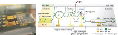 Previously, the major technical challenge inhibiting a turnkey system has been the combined integration of a stable, tunable laser with a high rejection filter (to eliminate noise) and an entangled-photon source (creating signal–idler pairs through nonlinear spontaneous parametric effects). Further, the absence of a unique material platform that supports all quantum photonic functionalities—low-loss guiding, filtering, efficient generation of entangled photons, active manipulation—while also providing laser gain has impeded monolithic integration.