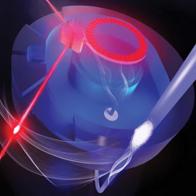 [Enlarge image]An artist’s view of the quantum electro-optical device. [E. Krantz, Krantz NanoArt]